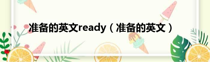 大家好,小东方来为大家解答以上的问题。准备的英文ready,准备的英文这个很多人还不知道,现在让我们一起来看看吧!