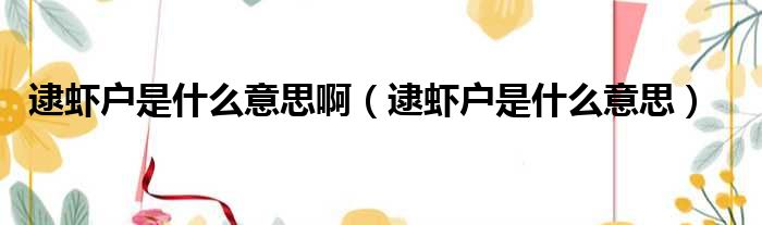 逮虾户是什么意思啊(逮虾户是什么意思)