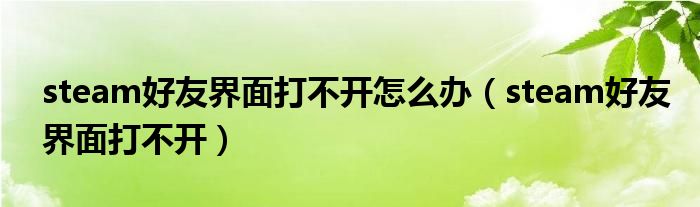 steam好友界面打不开怎么办(steam好友界面打不开)