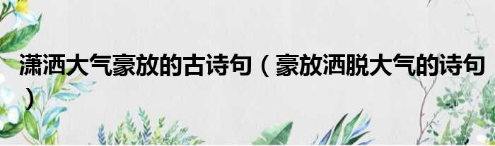 潇洒大气豪放的古诗句(豪放洒脱大气的诗句)