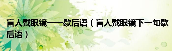 盲人戴眼镜一一歇后语(盲人戴眼镜下一句歇后语)