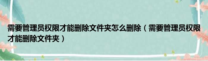 需要管理员权限才能删除文件夹怎么删除(需要管理员权限才能删除文件夹)
