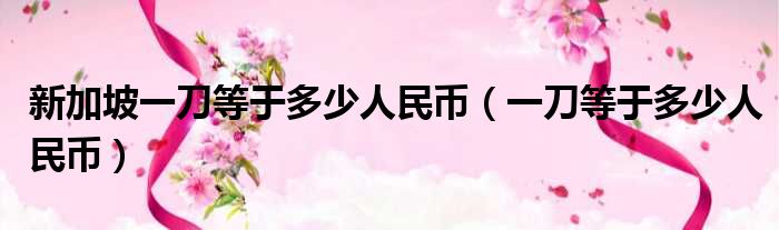 新加坡一刀等于多少人民币(一刀等于多少人民币)