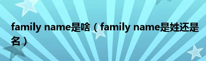 大家好,小东方来为大家解答以上的问题。family name是啥,family name是姓还是名这个很多人还不知道,现在让我们一起来看看吧!