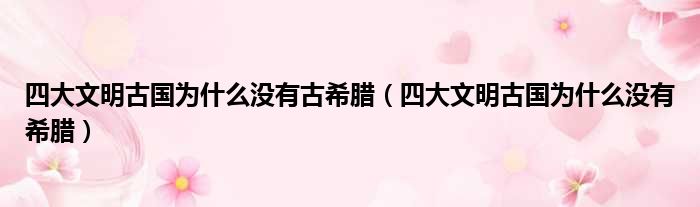 四大文明古国为什么没有古希腊(四大文明古国为什么没有希腊)