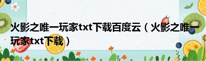 火影之唯一玩家txt下载百度云(火影之唯一玩家txt下载)