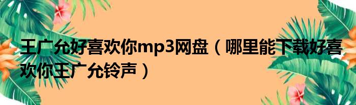 王广允好喜欢你mp3网盘(哪里能下载好喜欢你王广允铃声)