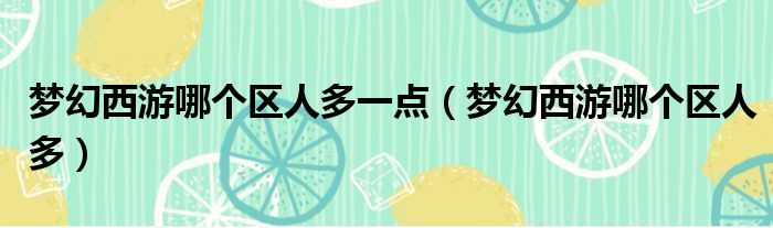 梦幻西游哪个区人多一点(梦幻西游哪个区人多)