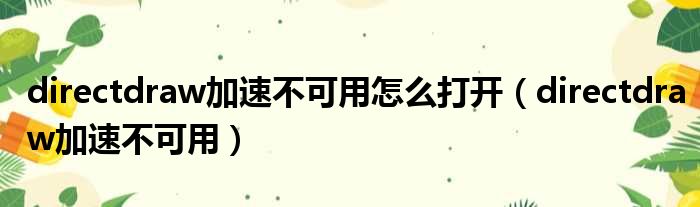 directdraw加速不可用怎么打开(directdraw加速不可用)