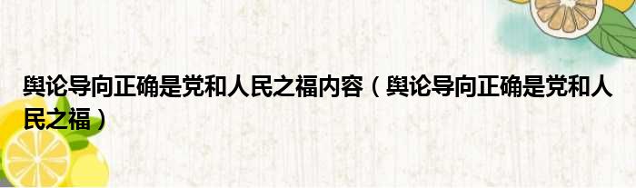 舆论导向正确是党和人民之福内容(舆论导向正确是党和人民之福)