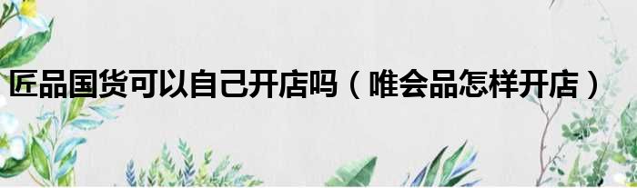 匠品国货可以自己开店吗(唯会品怎样开店)