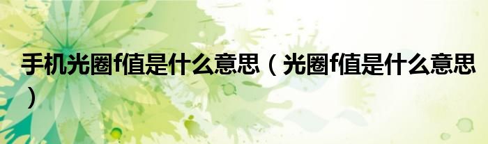 手机光圈f值是什么意思(光圈f值是什么意思)