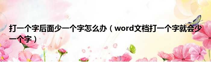导读 大家好,小东方来为大家解答以上的问题。打一个字后面少一个字怎么办,word文档打一个字就会少一个字这个很多人还不知道,现在让我们一起来看