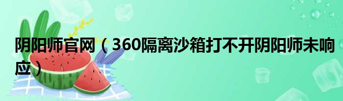 阴阳师官网(360隔离沙箱打不开阴阳师未响应)