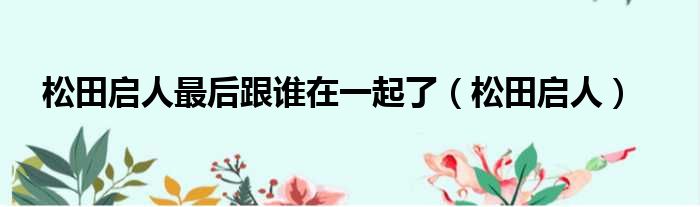 大家好,小东方来为大家解答以上的问题。松田启人最后跟谁在一起了,松田启人这个很多人还不知道,现在让我们一起来看看吧!
