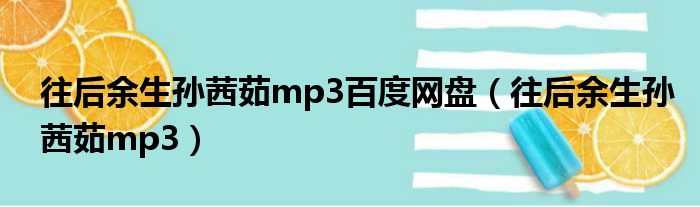 往后余生孙茜茹mp3百度网盘(往后余生孙茜茹mp3)