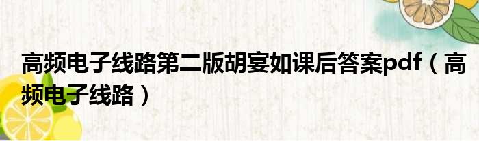 高频电子线路第二版胡宴如课后答案pdf(高频电子线路)