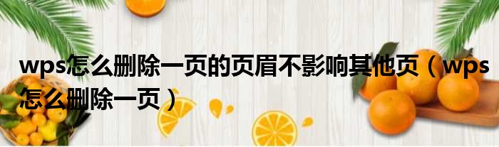 wps怎么删除一页的页眉不影响其他页(wps怎么删除一页)
