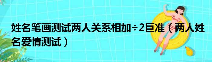 导读 大家好,小东方来为大家解答以上的问题。姓名笔画测试两人关系相加÷2巨准,两人姓名爱情测试这个很多人还不知道,现在让我们一起来看看吧!1