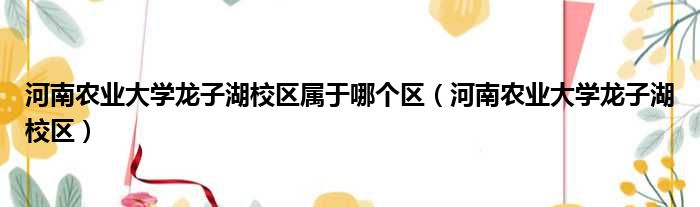河南农业大学龙子湖校区属于哪个区(河南农业大学龙子湖校区)