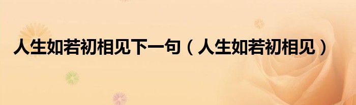 人生如若初相见下一句(人生如若初相见)