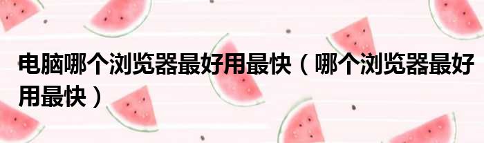 电脑哪个浏览器最好用最快(哪个浏览器最好用最快)