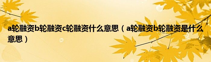 a轮融资b轮融资c轮融资什么意思(a轮融资b轮融资是什么意思)