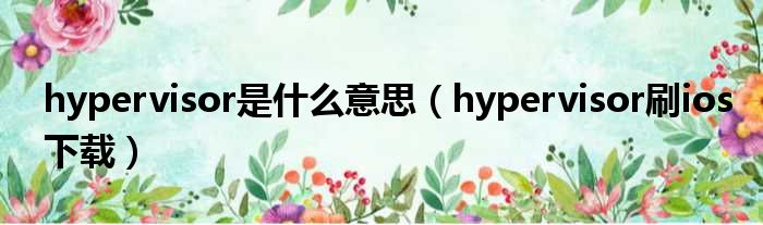 大家好,小东方来为大家解答以上的问题。hypervisor是什么意思,hypervisor刷ios下载这个很多人还不知道,现在让我们一起来看看吧!