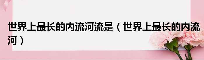 大家好,小东方来为大家解答以上的问题。世界上最长的内流河流是,世界上最长的内流河这个很多人还不知道,现在让我们一起来看看吧!