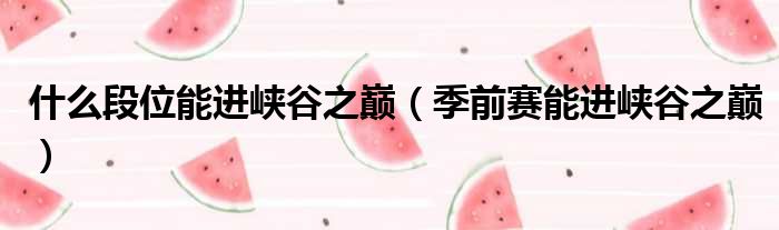 什么段位能进峡谷之巅(季前赛能进峡谷之巅)