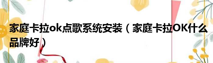 家庭卡拉ok点歌系统安装(家庭卡拉OK什么品牌好)