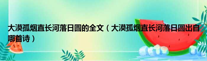 大漠孤烟直长河落日圆的全文(大漠孤烟直长河落日圆出自哪首诗)