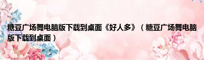 糖豆广场舞电脑版下载到桌面《好人多》(糖豆广场舞电脑版下载到桌面)