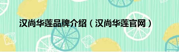 汉尚华莲品牌介绍(汉尚华莲官网)