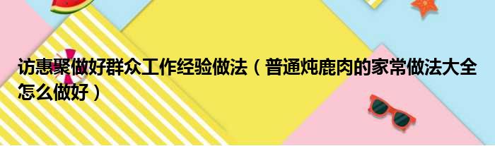 访惠聚做好群众工作经验做法(普通炖鹿肉的家常做法大全怎么做好)
