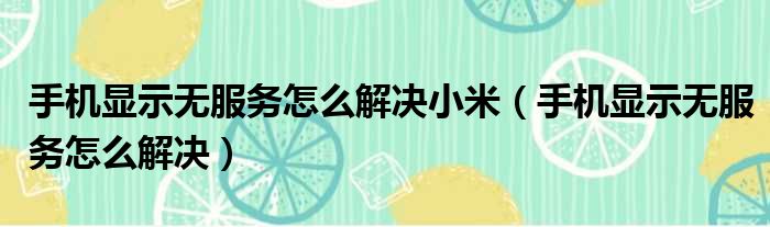 手机显示无服务怎么解决小米(手机显示无服务怎么解决)