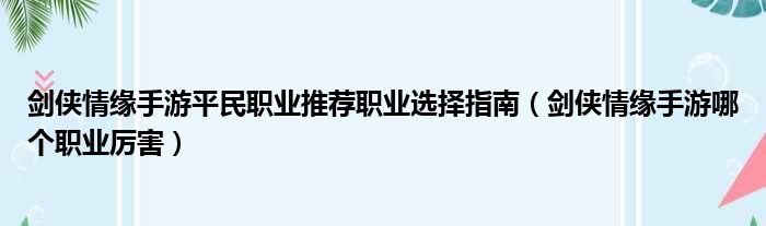 导读 大家好,小东方来为大家解答以上的问题。剑侠情缘手游平民职业推荐职业选择指南,剑侠情缘手游哪个职业厉害这个很多人还不知道,现在让我们一