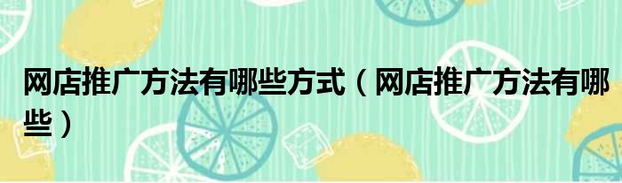 网店推广方法有哪些方式(网店推广方法有哪些)