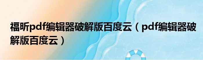 福昕pdf编辑器破解版百度云(pdf编辑器破解版百度云)