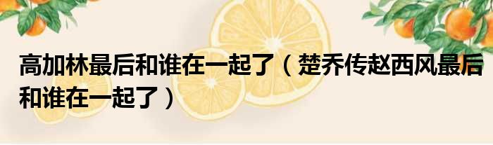 高加林最后和谁在一起了(楚乔传赵西风最后和谁在一起了)