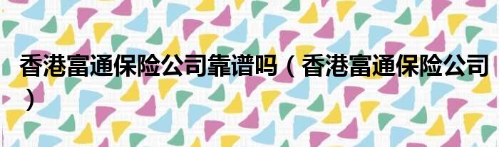 香港富通保险公司靠谱吗(香港富通保险公司)