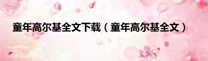 大家好,小东方来为大家解答以上的问题。童年高尔基全文下载,童年高尔基全文这个很多人还不知道,现在让我们一起来看看吧!