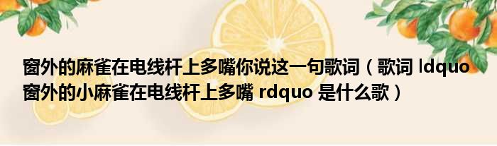 导读 大家好,小东方来为大家解答以上的问题。窗外的麻雀在电线杆上多嘴你说这一句歌词,歌词 ldquo 窗外的小麻雀在电线杆上多嘴 rdquo 是什