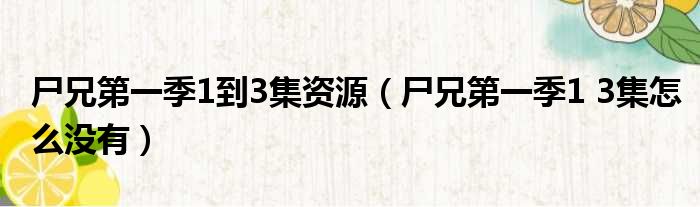 尸兄第一季1到3集资源(尸兄第一季1 3集怎么没有)