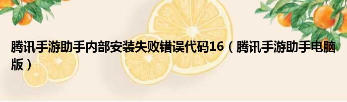 腾讯手游助手内部安装失败错误代码16(腾讯手游助手电脑版)