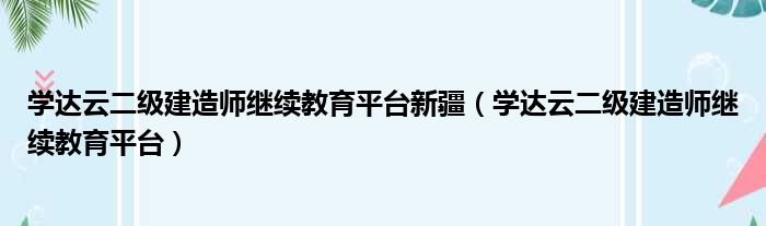 学达云二级建造师继续教育平台新疆(学达云二级建造师继续教育平台)