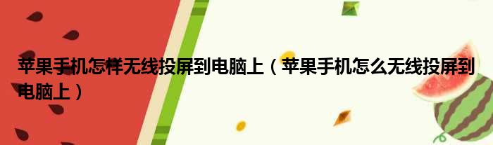 苹果手机怎样无线投屏到电脑上(苹果手机怎么无线投屏到电脑上)
