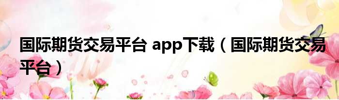 导读 大家好,小东方来为大家解答以上的问题。国际期货交易平台 app下载,国际期货交易平台这个很多人还不知道,现在让我们一起来看看吧!1、你好