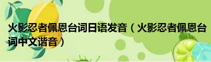 大家好,小东方来为大家解答以上的问题。火影忍者佩恩台词日语发音,火影忍者佩恩台词中文谐音这个很多人还不知道,现在让我们一起来看看吧!