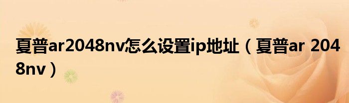 夏普ar2048nv怎么设置ip地址(夏普ar 2048nv)